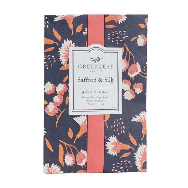 Saffron & Silk (Safran & Seide) ist ein opulenter, floraler Duft mit einem Hauch orientalischer Mystik. Arabischer Jasmin, cremig-weiße Gardenien und intensiver Rosenduft sorgen für blumige Intensität. Patchouli und Moschus in der Basis tragen erdige Wärme und Volumen bei.